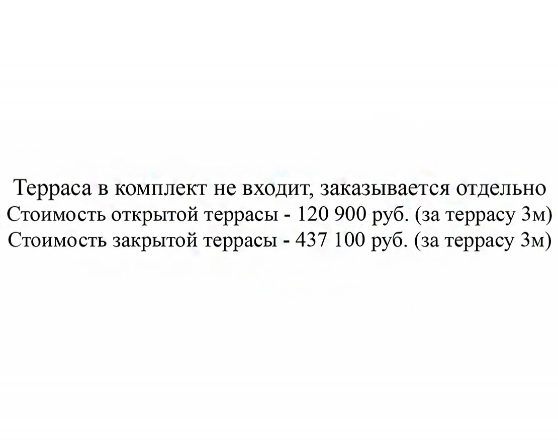 Терраса не входит в комплект, заказывается отдельно (цены указаны в карусели фото)
